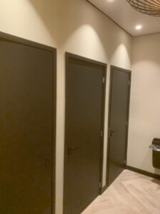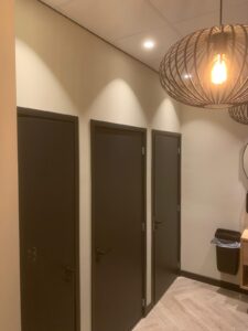 Met trots hebben wij voor een mooi aannemersbedrijf in Zuid-Holland de toiletten mogen renoveren. We hebben de oude deuren in een moderne en strakke zwarte kleur geschilderd. Naast het schilderwerk kunnen wij ook je hele toilet renoveren!
